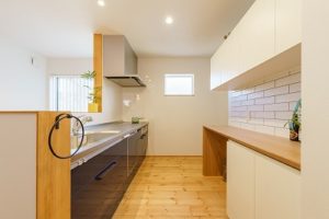 また、リビングダイニングが見渡せる対面キッチンは家族つながりを感じられ、会話が広がります。